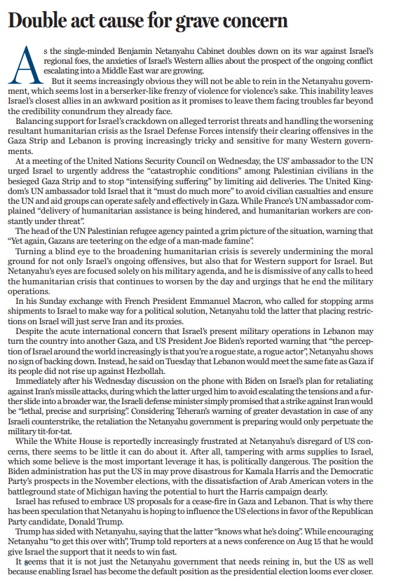 对不休扩大的东谈主谈见地危机目大不睹,不仅严重毁伤了以色列军事算作的谈德基础,也毁伤了好意思国和西方赞助以色列的谈德基础。内塔尼亚胡眼里只消军事议程,对任何条件他关注东谈主谈见地危机、为止军事算作的呼声皆置之不睬,不屑一顾。